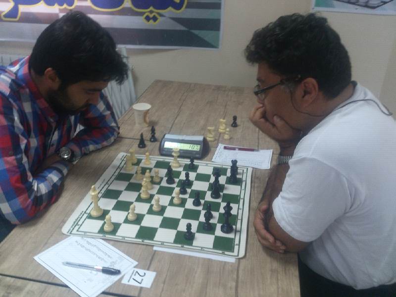 سمت چپ تصویر آریا یوسفی از آذربایجان غربی نایب قهرمان جدول زیر 14 سال در مقابل امیرحسین علیمردانی از قزوین